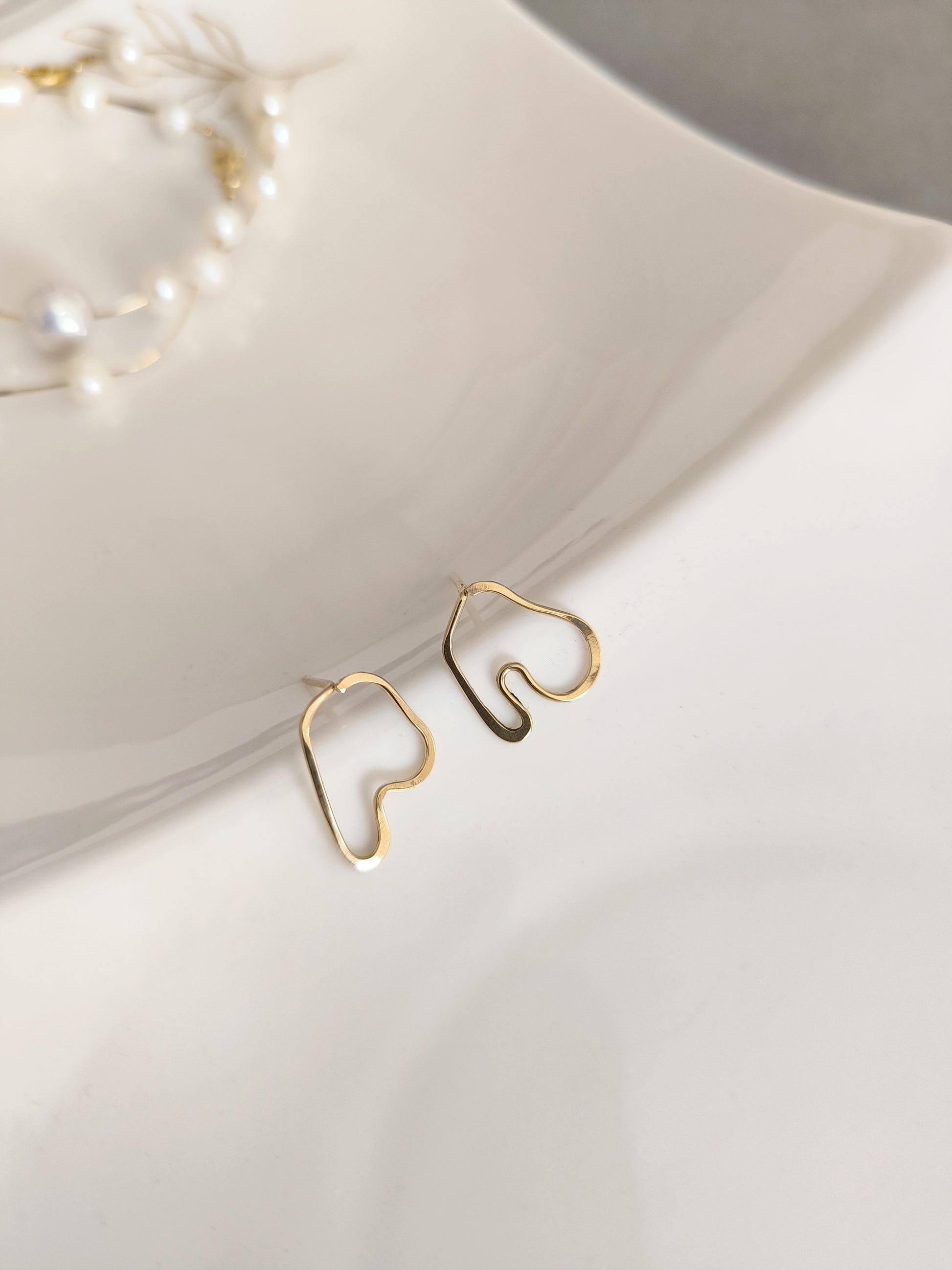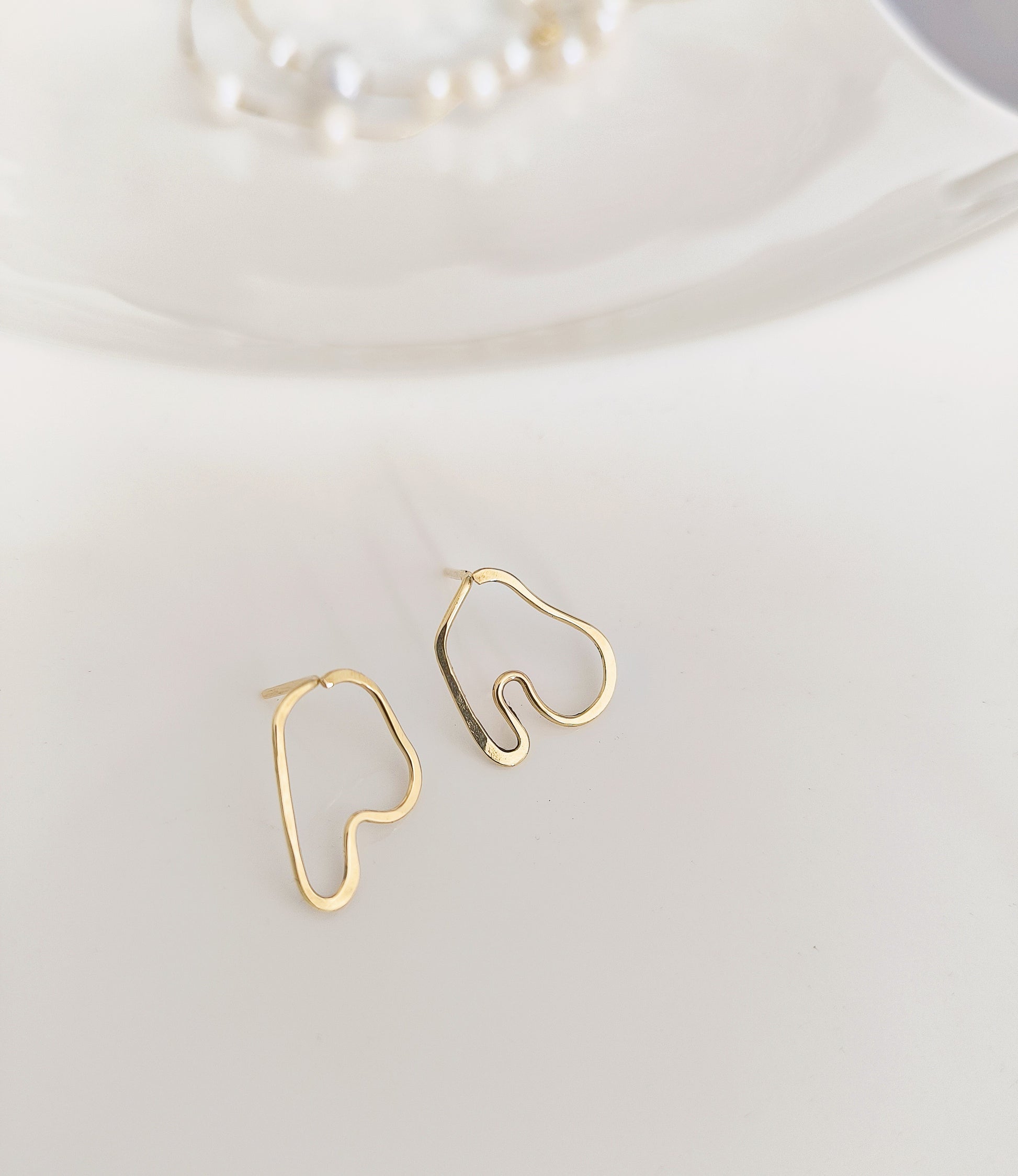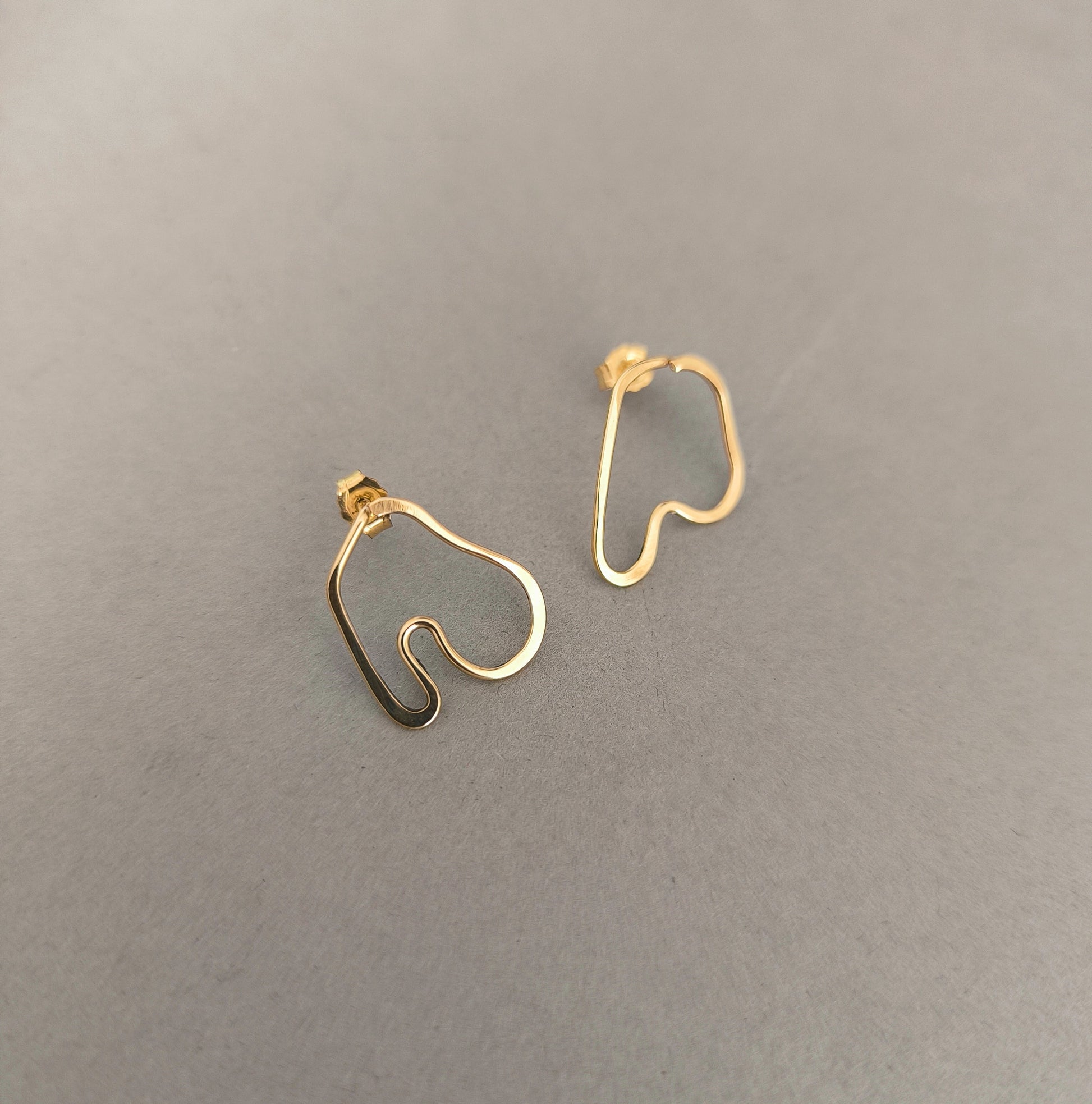 Petites puces minimalistes au design irrégulier et asymétrique, en or laminé 14k.